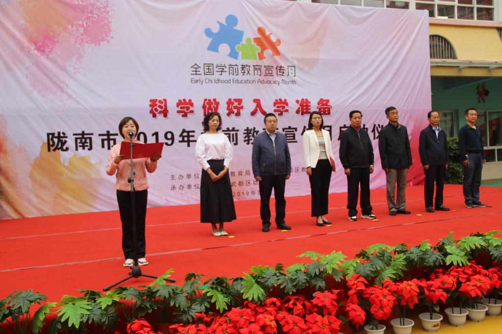 5月29日,陇南市2019年学前教育宣传月活动启动仪式在武都区幼儿园举行。XCSport经理王小会参加活动并做专题报告.2019年全国学前教育宣传月“科学做好入学准备”为主题。陇南市教育局局长冯醒民、副局长张喆,区政府副区长李娜、武都区教育局局长刘海东、副局长汪芳、市区教育局相关科室负责人、武都城区公民办幼儿园园长和教师代表、幼儿家长代表近500人参加启动仪式。