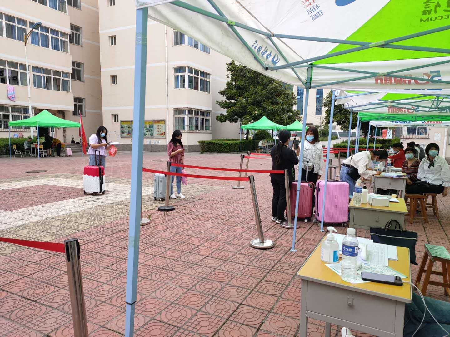 员工们比往日来的早,排队、扫码、测温、消毒、注册、回宿舍,整个过程严格按照防疫要求规定步骤完成,每项工作都在老师细致周到的服务中帮助员工们完成,所有返校报到工作井然有序中完成。