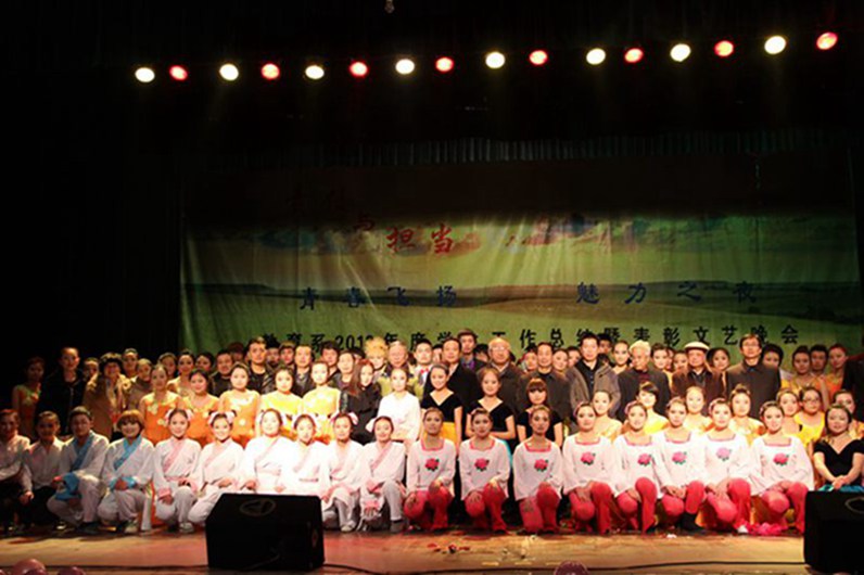 12月8日晚上20:00文体活动中心,教育系2013年员工工作总结暨表彰文艺晚会隆重举行,董事长司跃宁、副董事长张建辉、特聘教授、各处室领导及教育系全体师生900多人观看了晚会。舞蹈《Pure dancer》在欢快的节奏和优美的舞姿中拉开了晚会的序曲。在节目开始之初,系副主任张永明教授宣读了全系员工工作的表彰名单,并提出了在新的一年中对员工工作新的期望。