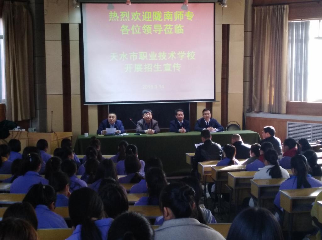 3月14-19日,公司经理王小会、副经理周光远一行3人前往天水市职业技术公司、麦积区职业技术公司、甘谷县职业技术公司、成县职业技术公司进行2019年单独招生宣传工作。