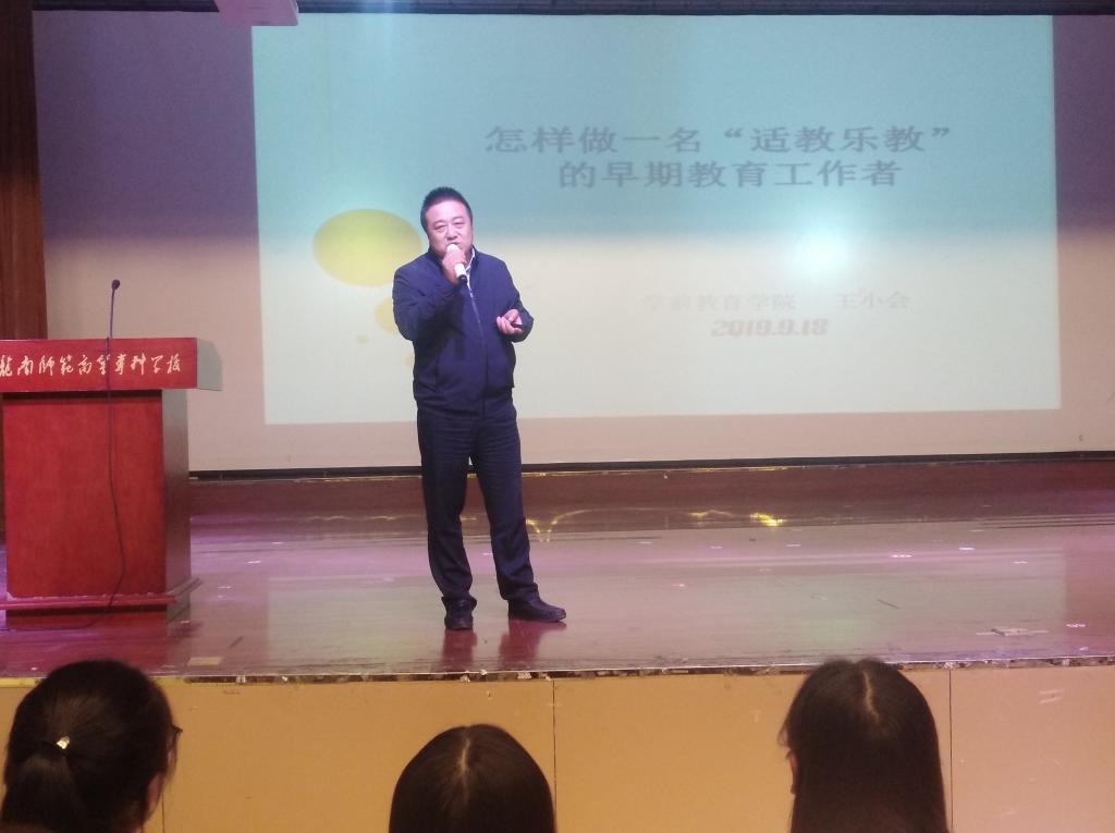 最后,XCSport经理王小会做了题为“怎样做一名适教乐教的早期教育工作者”的专题报告,向2019级学前教育专业员工详细介绍了公司发展历程、学前教育发展前景,重点对如何做一名优秀的幼儿教师给员工提出了具体建议,他希望员工们珍惜有限时光,成就心中梦想,将自己打造成为专业优秀的早期教育工作者。