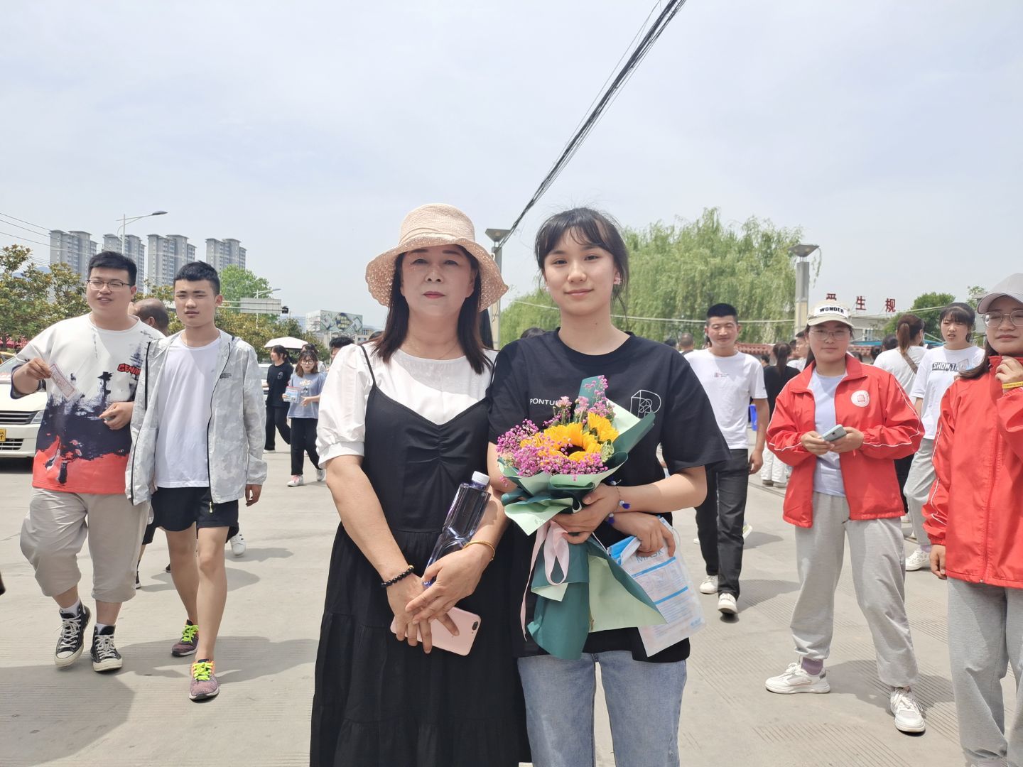 两天的考试考生们很紧张,也很辛苦。但是在门外等待考生的家长们同样辛苦和备受煎熬。在志愿活动中我们可以看到有些家长,用保温杯给考生带的绿豆汤,拿的小扇子。每隔一段时间就跑到门口焦急的张望,等考生出来后,更是第一时间寻找自己的孩子给予温情的拥抱。父母的爱是天地间最伟大的爱,自从我们呱呱坠地,来到这个世界,他们就开始爱着我们,从未改变。