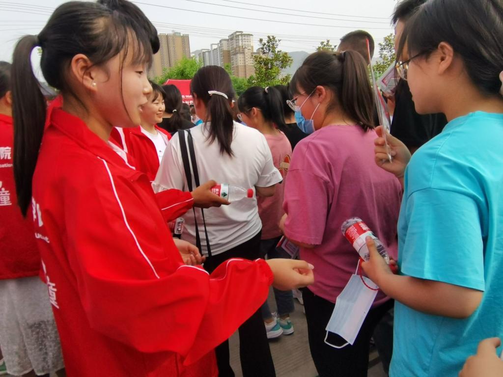 67日下午2点,参与服务的志愿者在陇南师专本校区门口集合。清点饮用水、葡萄糖等物品,确定人员到齐后统一前往服务点——成州中学。活动现场志愿者也负责安抚考生以及考生家长焦急的心情,为考生提供便利服务。