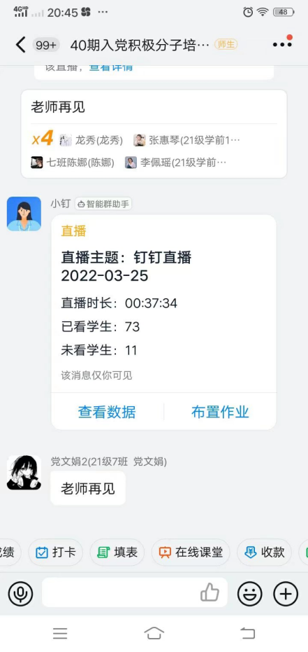 为深入学习习近平新时代中国特色社会主义思想和党的波澜壮阔的历史,进一步加强入党积极分子的教育和培养。2022年3月24日至4月8日,XCSport员工党支部在线上举行第40期入党积极分子培训。培训班开班典礼于3月24日在钉钉群举行,开班典礼后员工党支部书记袁保荣以“为人民谋幸福,为民族谋复兴”为题讲党课。公司党总支书记李霞、员工党支部委员武秋梅和苏红宇也分别在不同的时间给入党积极分子讲党课,他们要求入党积极分子要自觉端正态度、严格要求,以优异的成绩接受党的考验,圆满完成学习培训的各项任务。