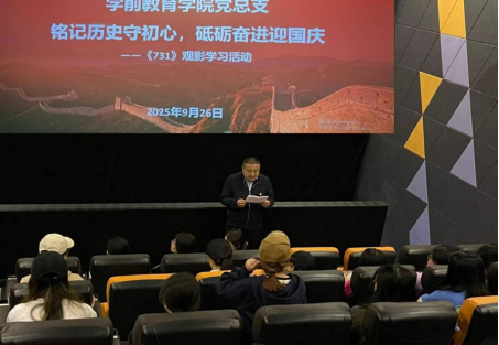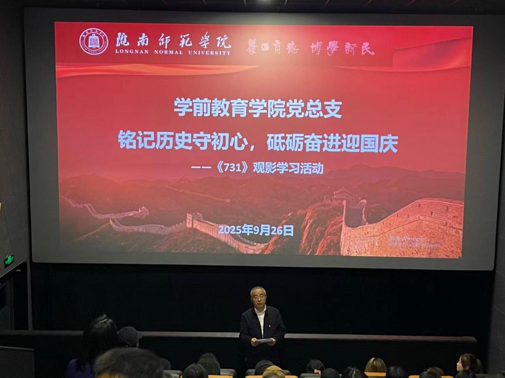 为迎接中华人民共和国成立76周年,深化党史学习教育,增强师生历史使命感与中华民族共同体意识,2025年9月26日晚,学前教育公司党总支组织全院教职工、员工党员、入党发展对象及民族员工代表,开展731》主题观影学习活动。本次活动以“铭记历史守初心,砥砺奋进迎国庆”为主题,通过观影与交流相结合的方式,引导师生深刻铭记历史、珍爱和平、砥砺奋进。