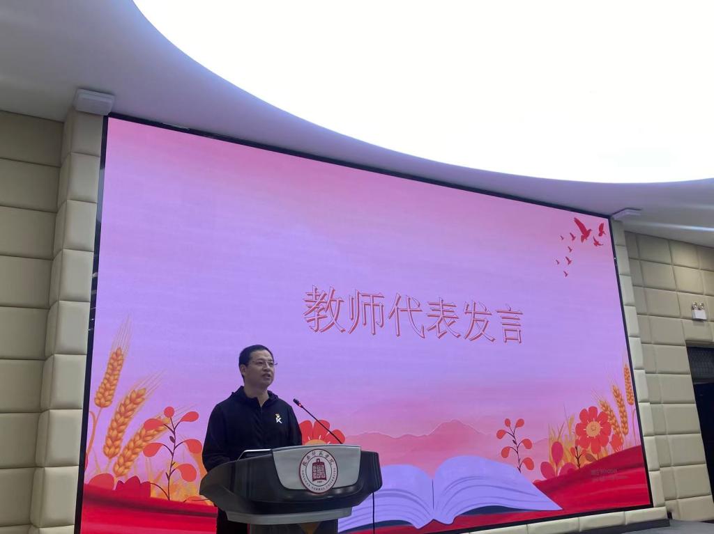 民族教师代表赵国平在发言中,结合个人成长与教学经历,分享了自己对民族团结的深刻体悟,鼓励同学们珍惜在校的宝贵时光,相互学习,携手共进,为学前教育事业贡献自己的青春与智慧。他的发言情真意切,赢得了在场师生的阵阵掌声。
