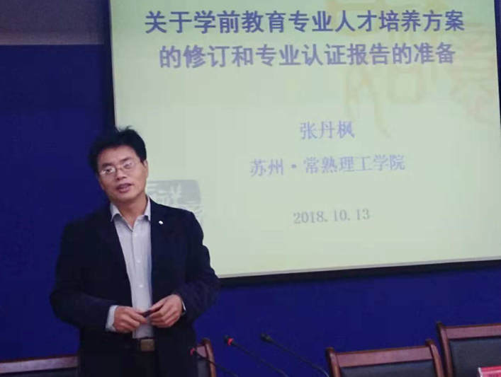 张丹枫教授做了《关于学前教育专业人才培养方案的修订和专业认证报告准备》的报告。他结合常熟理工公司专业认证工作的亲身体会,从学前教育专业认证的背景、要义和举措,认证报告的准备以及人才培养方案修订工作的体会等三个方面进行了详细的介绍和讲解。张丹枫教授理论联系实践,运用大量的翔实资料,将具体的操作步骤进行了透彻讲解,提高了广大教师对师范专业认证工作的认识,获得了参会人员的一致好评。 潘文生在总结时强调指出,师范专业认证试点工作是新时代国家教师教育工作创新发展的重大举措,也是今后公司工作重要内容之一。各公司也要依据《教师教育课程标准》和《师范专业认证标准》两个基本文件,围绕小学教育和学前教育两个特色专业进一步积极开展学习宣传、培训和评建活动。通过师范专业认证试点促进公司产品改革,促进专业和课程建设,切实提高师范生的人才培养质量。